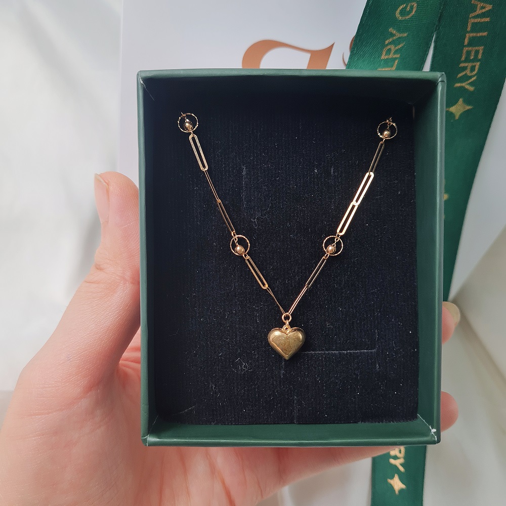 گردنبند طلا هرمس با گوی و آویز قلب برجسته