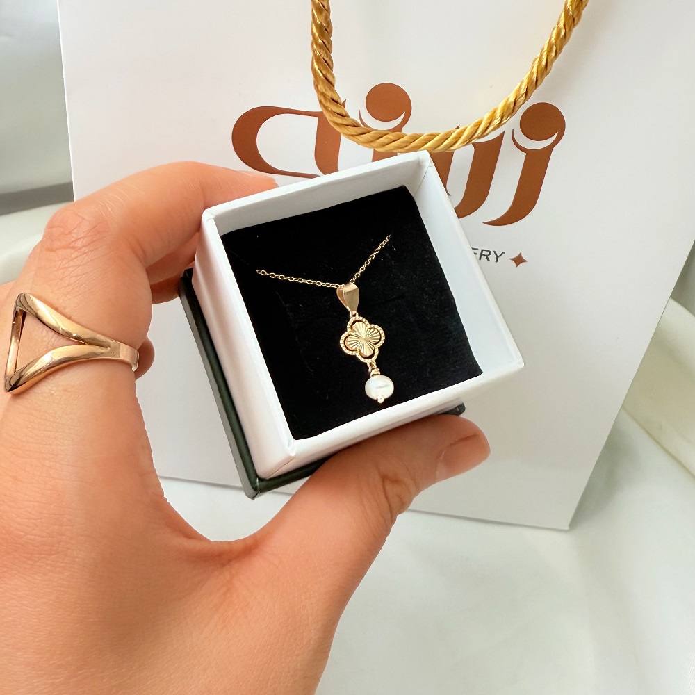 آویز طلا ونکلیف تراش با مروارید