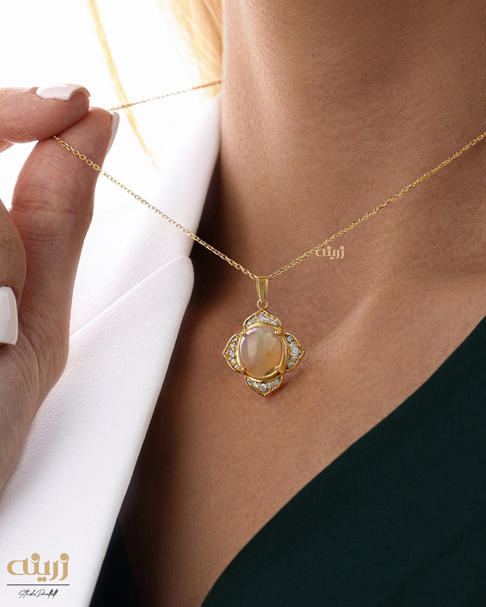 آویز اوپال سفید طرح جواهر