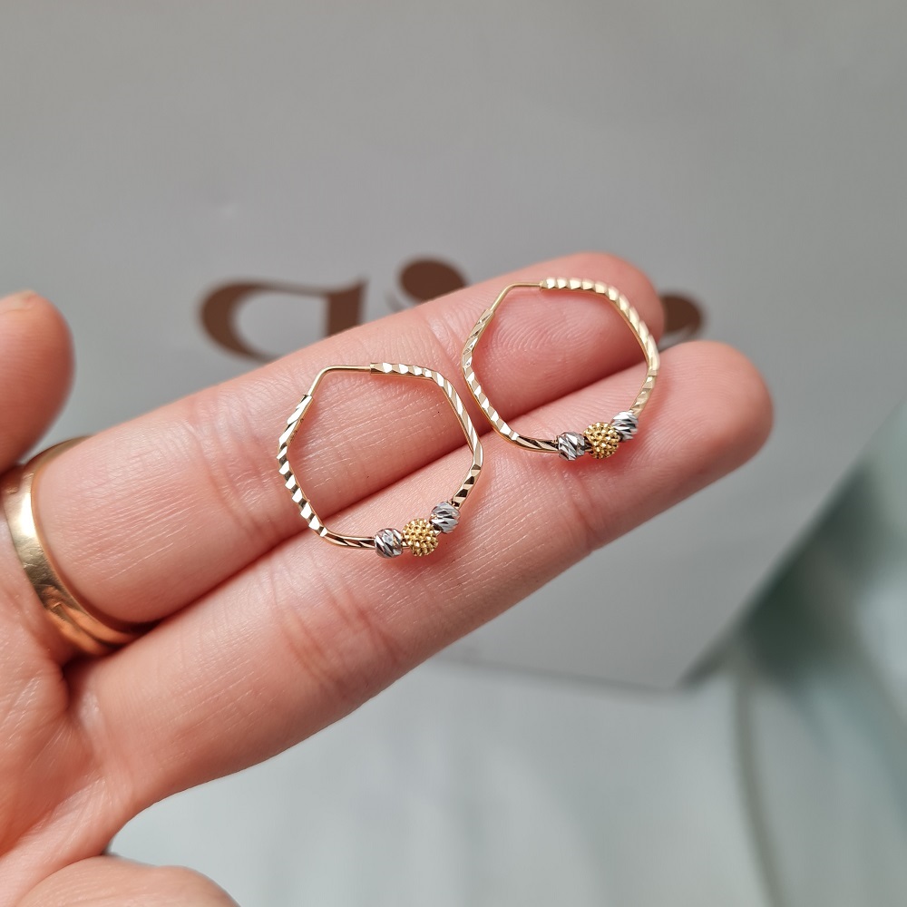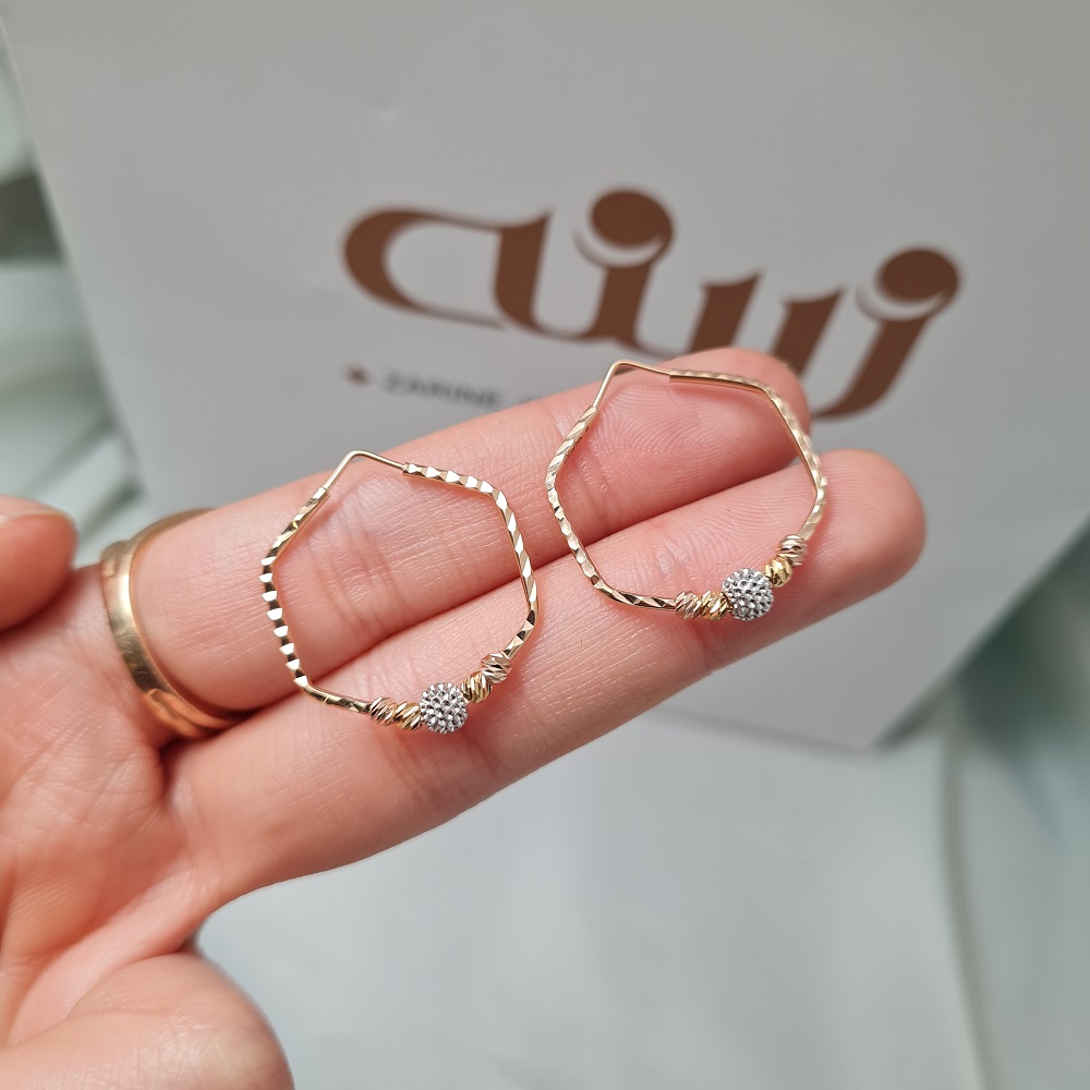 گوشواره طلا تراش شش ضلعی با گوی کونیک