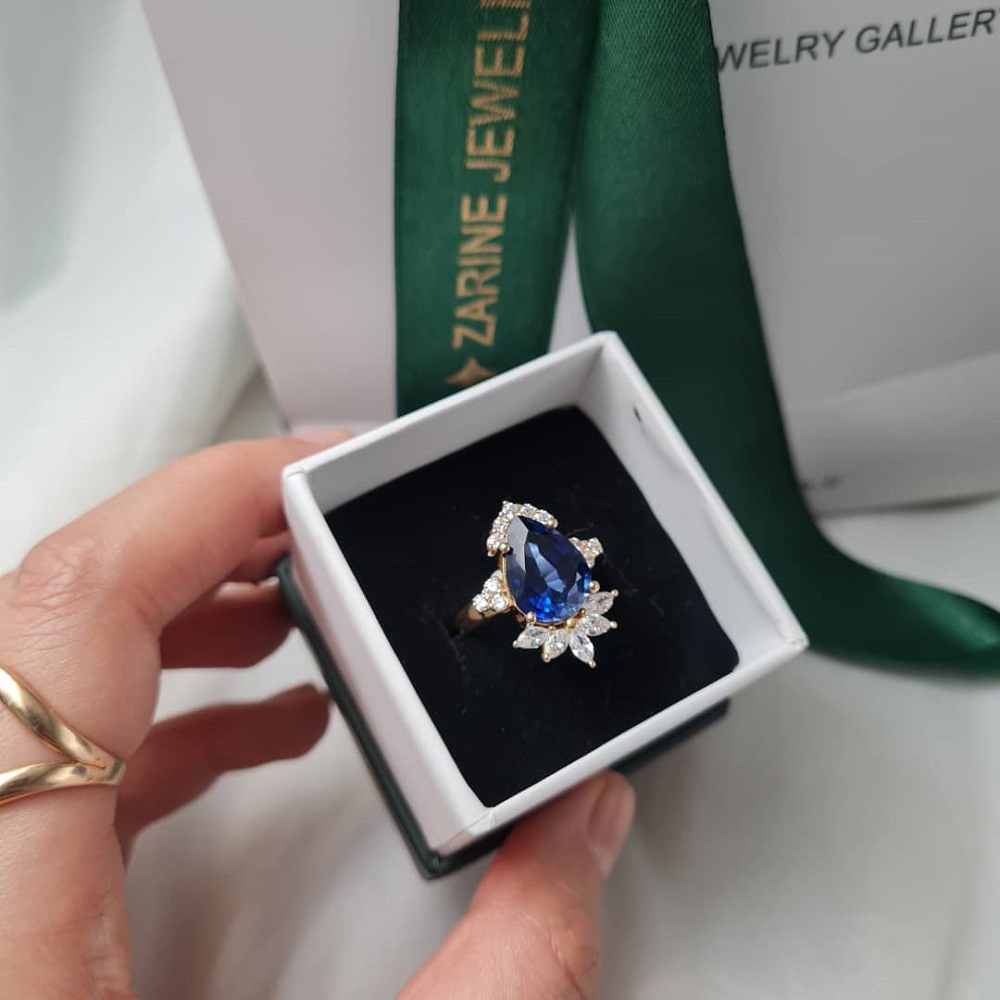 انگشتر طلا طرح جواهر اشک کبود